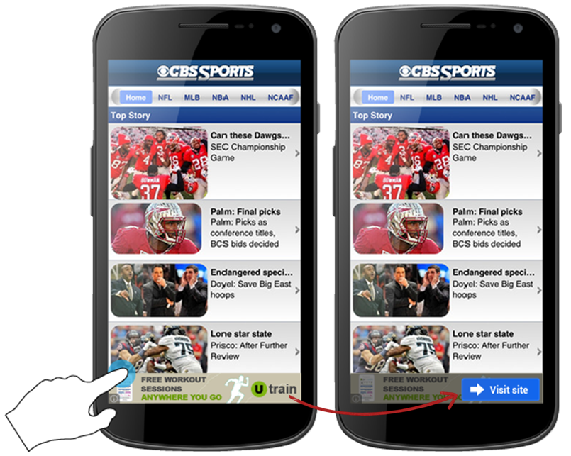 Beim ersten Klicken auf die Werbung erscheint ein zusätzlicher Button, der betätigt werden muss, um auf das Werbeangebot weitergeleitet zu werden.